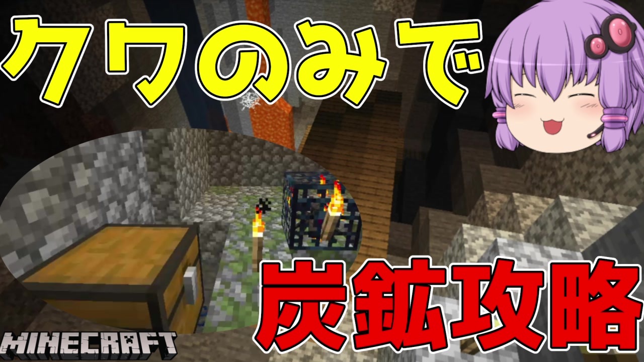 マインクラフト クワのみで廃坑攻略 スポーンブロックを探しまくった Voiceroid実況 初心者がクワ縛り生活 3 ニコニコ動画